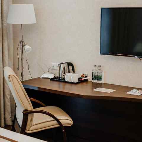 Гостям предлагаются форматы обслуживания «шведский стол» и обслуживание по меню, доступен room service. Для сотрудников индустриального парка осуществляется доставка обедов. В тёплое время года организуется барбекю на свежем воздухе в беседке с качелями. Для встреч и лёгкого перекуса на территории работает лобби-бар.