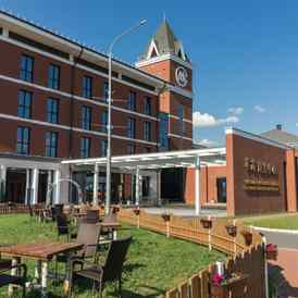 Гостям предлагаются форматы обслуживания «шведский стол» и обслуживание по меню, доступен room service. Для сотрудников индустриального парка осуществляется доставка обедов. В тёплое время года организуется барбекю на свежем воздухе в беседке с качелями. Для встреч и лёгкого перекуса на территории работает лобби-бар.